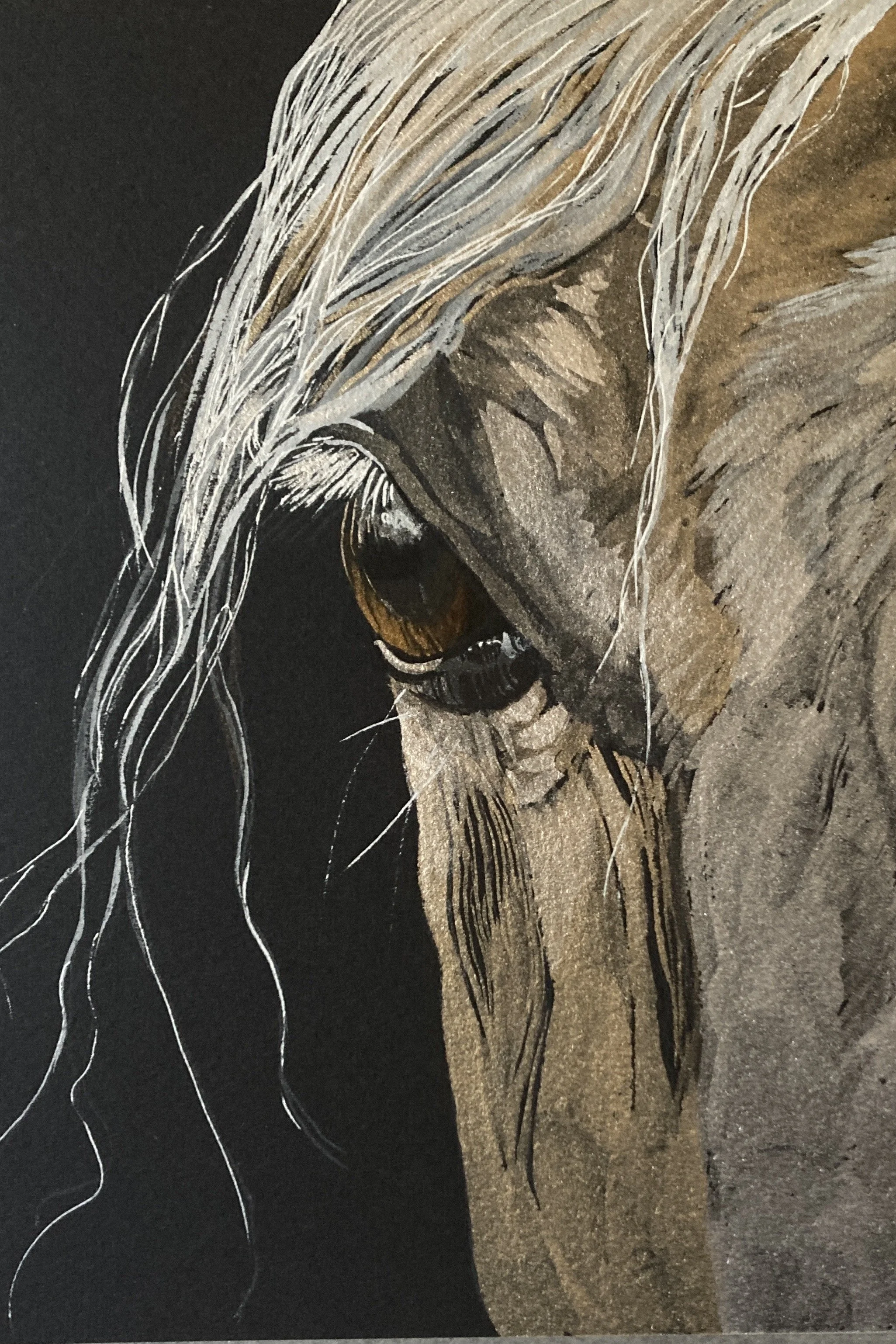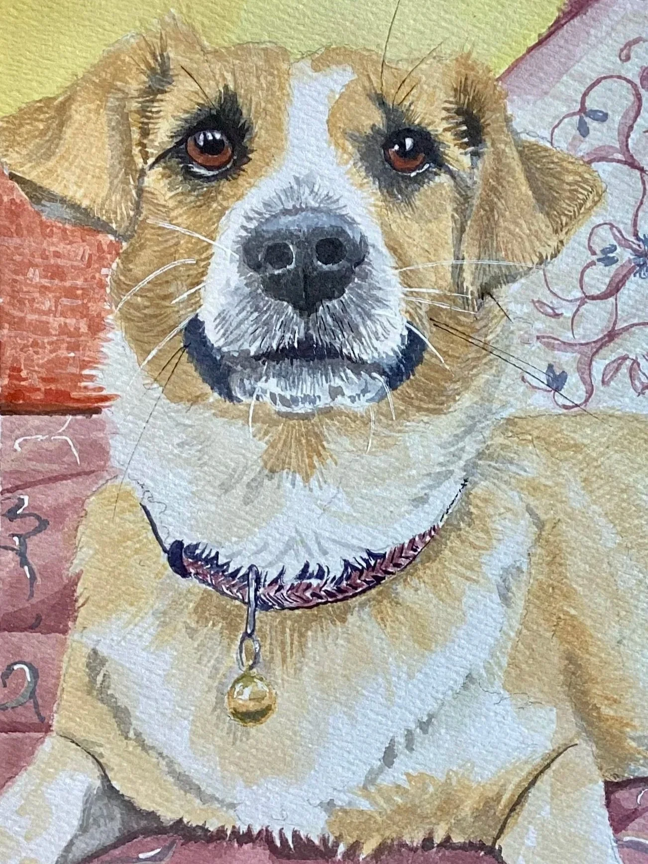 When my heart dog Opal died in 2019, after 16 wonderful years with her, she left a big hole in my life, both physically and emotionally. I decided to paint pet portraits of friends’ beloved pets who have passed, and give them to them. I had just started my journey with watercolors at that point and doing these portraits helped to hone my skills with that medium. But the biggest gift was sharing in the joy I had brought to people who loved their animals."